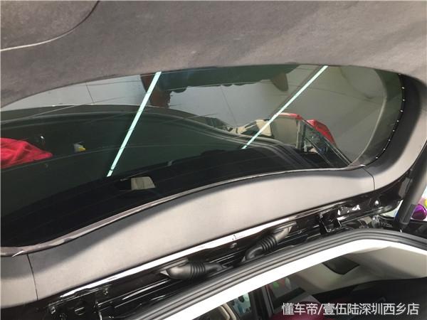 从外往里看效果,深色玻璃+玻璃膜基本上一片漆黑了。极大的保护了车内隐私